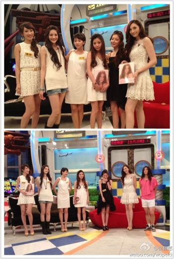 “甜心幫”上節目力挺許維恩(穿黑衣者)。(圖片來自新浪微博)