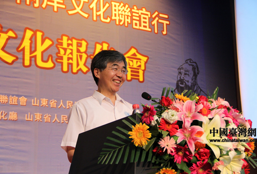 山東省委宣傳部副部長、山東省文化廳黨組書記徐向紅主講山東文化報告會。(中國臺灣網 芮益芳 攝)