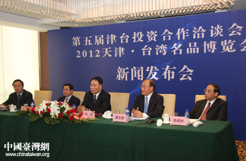 第五屆津臺投資合作洽談會暨2012天津·臺灣名品博覽會新聞發布會在津舉辦。圖為發布會現場。(中國臺灣網 王思羽 攝)