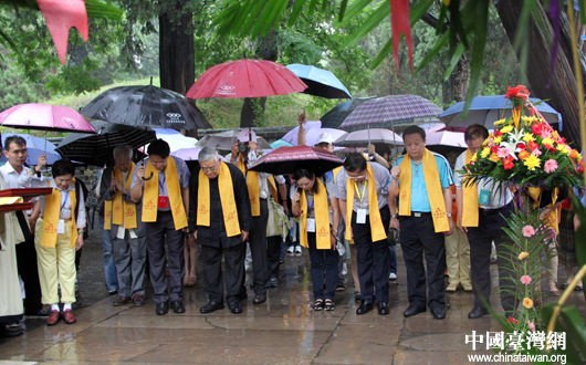 兩岸文化界人士雨中祭拜孔子圣人。(中國臺灣網 芮益芳 攝)