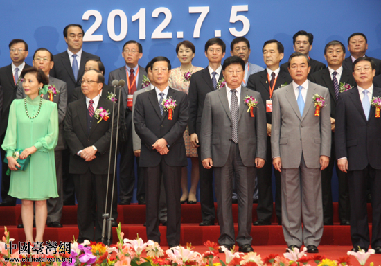 中共中央政治局委員、天津市委書記張高麗,全國政協副主席鄭萬通,中共中央臺辦、國務院臺辦主任王毅,中國國民黨副主席蔣孝嚴等領導、嘉賓出席開幕式。(中國臺灣網 王思羽 攝)