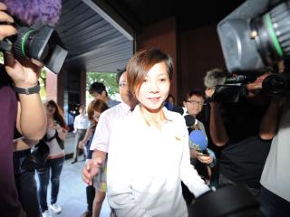 彭愛佳上午9點抵達臺檢方特偵組。圖片來自臺灣“中央社”