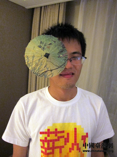 大陸志愿者搞怪拍照。(中國臺灣網 吳曉寒 攝)