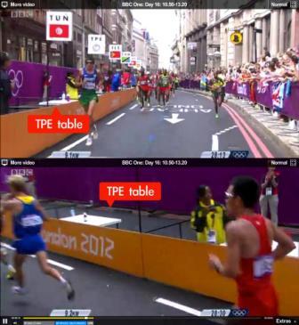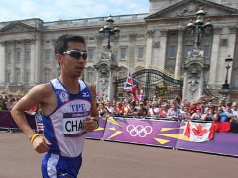中華臺北隊馬拉松選手張嘉哲在倫敦奧運獲得77名的成績,但驚爆場邊無志工為他遞水的爭議。來源臺灣“今日新聞網”