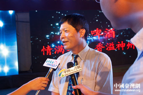 臺(tái)灣煙酒公司臺(tái)灣啤酒大陸地區(qū)總代理商江新榮董事長接受采訪。(中國臺(tái)灣網(wǎng) 吳曉寒 攝)