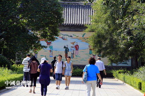 2012年海外臺(tái)商齊魯行活動(dòng)2日上午在山東濰坊繼續(xù)進(jìn)行,海外臺(tái)商參觀楊家埠民俗藝術(shù)大觀園后合影。(中國臺(tái)灣網(wǎng) 楊麗 攝)