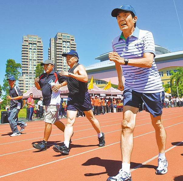 中國臺灣網9月9日消息 據臺灣媒體報道,馬英九昨日參加首長競走比賽,花了2分36秒揮汗拼完400米全程,其他官員不敢造次,跟在他背后,依慣例讓他拿冠軍,但他對自己的成績表示“不滿意!”