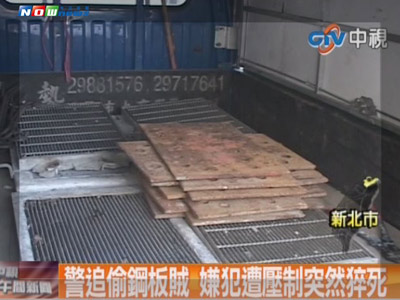 新北市淡水區(qū)慣犯開藍(lán)色小貨車竊取工地鋼板被逮,突然倒地猝死。(圖片來(lái)自臺(tái)媒)
