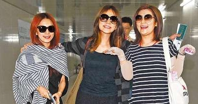 Hebe(左起)、Ella、Selina前晚穿黑色系服裝搭機(jī)飛往米蘭。資料照片來源:臺(tái)灣媒體