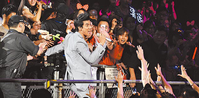 王力宏繞場時,受到粉絲伸手拉扯。(圖片來源:香港《蘋果日報》)