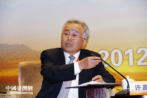 19日下午,“2012海峽兩岸企業家紫金山峰會”兩岸金融合作專題論壇在南京舉行,臺灣金融服務業聯合總會理事長許嘉棟參與論壇與談。(中國臺灣網 于斯文 攝)