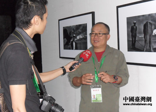 臺灣中視記者采訪臺灣攝影大師林添福先生。(中國臺灣網 郭慶娜 攝)