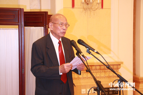 黃埔軍校同學會會長林上元在招待會上致辭。(中國臺灣網(wǎng) 齊曉靖 攝)