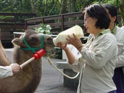 中國臺灣網10月10日消息 據臺灣媒體報道,臺北市立動物園臉書(facebook)在上周發了一張照片,一位短發女子穿著動物園制服,正在喂一只小駱駝喝奶,但許多網友看到這張照片后,不禁懷疑:“是蔡英文(民進黨前主席)養駱駝嗎?”