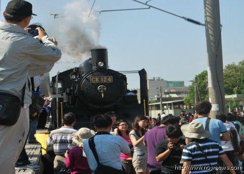 上午9時(shí)45分許,從北上的火車(chē)道突傳來(lái)“嗚嗚”巨響之聲,天空中又沖出一道黑龍煙,有人大呼老火車(chē)來(lái)了。“這是以前必須乘座的交通工具”,民眾言語(yǔ)中帶著激動(dòng)又具回想。年青人動(dòng)作比較快沖進(jìn)車(chē)站內(nèi)迎接緩緩駛來(lái)的CK124蒸汽火車(chē),大家拿起相機(jī)猛照留念,顯出對(duì)蒸汽火車(chē)的懷念及祝福。熱鬧活動(dòng)直到中午結(jié)束,來(lái)客仍依依不舍的離開(kāi)日南老火車(chē)站。