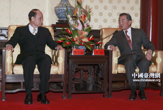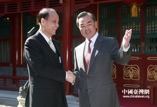 10月17日中午,中共中央臺辦、國務院臺辦主任王毅在北京釣魚臺賓館會見海基會董事長林中森。(中國臺灣網 田云鵬 攝)
