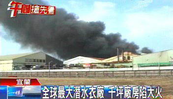 全球最大潛水衣代工廠宜蘭廠區(qū)數(shù)千平米廠房突被大火吞噬(圖片來(lái)源;臺(tái)灣TVBS電視臺(tái))