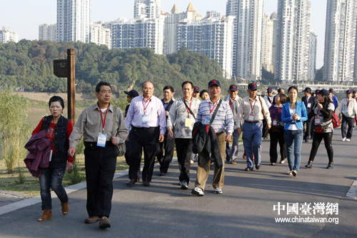 臺灣信眾漫步株洲市湘江風光帶,領略湘江風光 。(中國臺灣網(wǎng) 陳睿 攝)