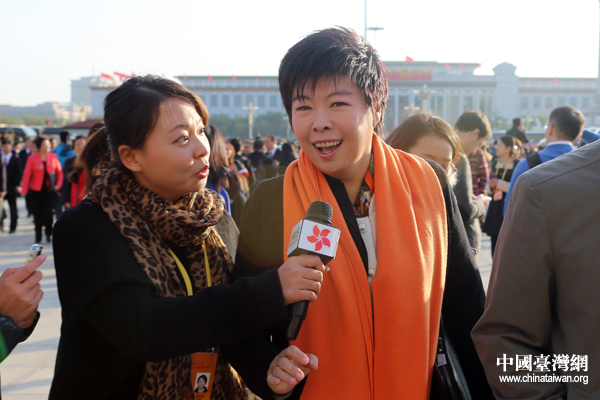 11月8日,中國共產黨第十八次全國代表大會在北京人民大會堂開幕。早上8時許,來自全國各地的代表抵達人民大會堂,這里再次成為世界矚目的焦點。圖為一位基層代表接受記者采訪。(中國臺灣網 王偉 攝)