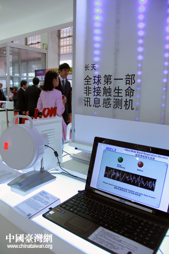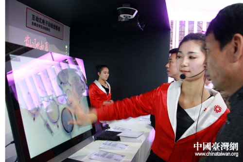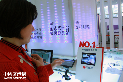 2012北京臺灣名品博覽會22日上午在北京開幕,臺灣精品館此次攜十項“全球第一”再度亮相京城。圖為工作人員演示全球第一臺疲勞偵測器.(中國臺灣網 楊麗 攝)