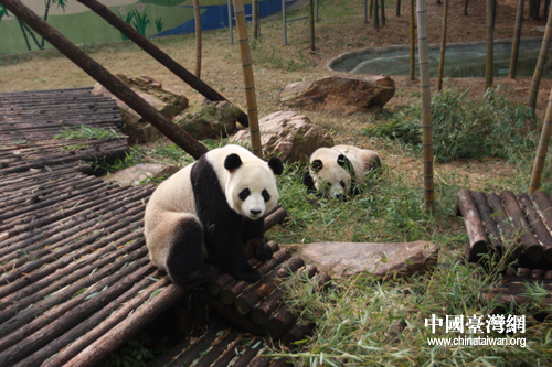 熊貓“奧運”、“壯妹”。(中國臺灣網(wǎng) 樊玉嬌 攝)