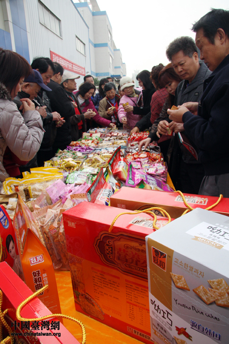 臺灣嘉賓試吃大陸食品加工企業產品。(中國臺灣網 黃艷艷 攝)
