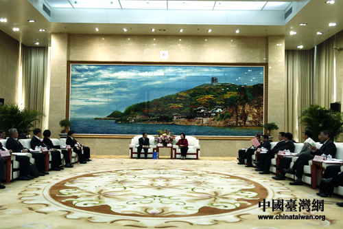 今天上午,安徽省副省長(zhǎng)花建慧在馬鞍山會(huì)見(jiàn)了參加海峽兩岸電子信息博覽會(huì)的兩岸嘉賓。(中國(guó)臺(tái)灣網(wǎng) 王偉 攝)