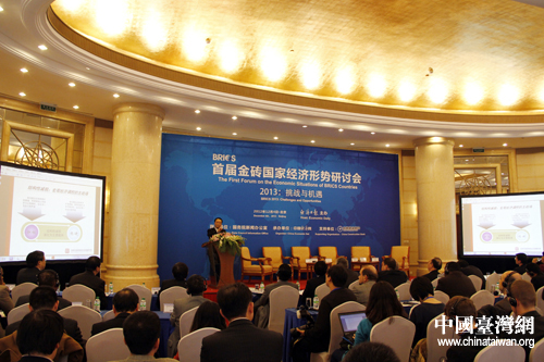 以“金磚2013:挑戰(zhàn)與機遇”為主題的首屆金磚國家經(jīng)濟形勢研討會今天下午在京舉行。(中國臺灣網(wǎng) 王偉 攝)