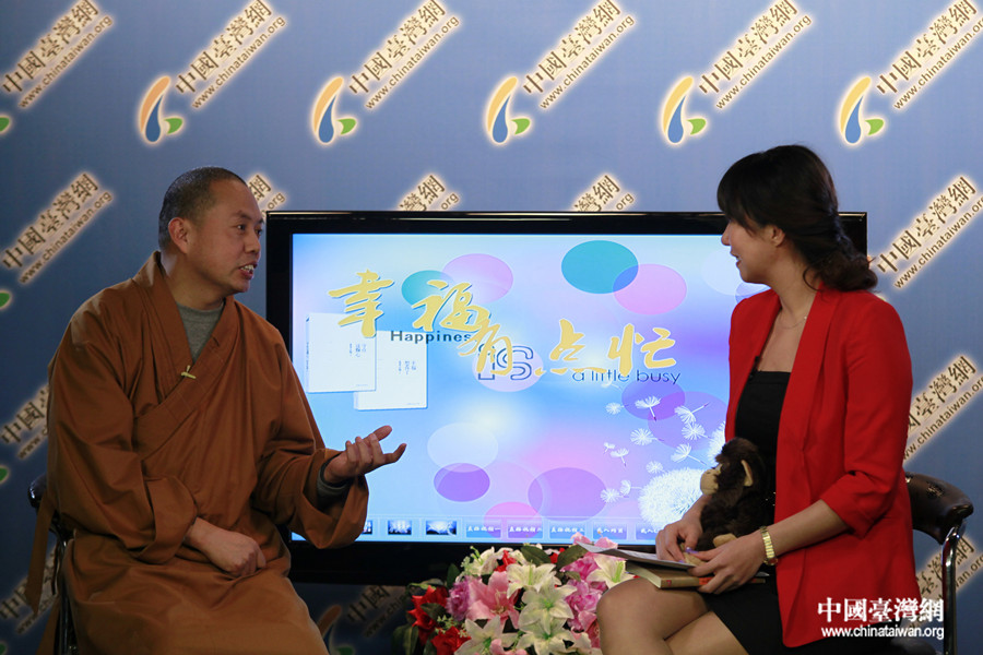 延參法師攜新書(shū)《幸福想你了》作客中國(guó)臺(tái)灣網(wǎng),與兩岸網(wǎng)友暢談幸福與人生。(中國(guó)臺(tái)灣網(wǎng) 王偉 攝)