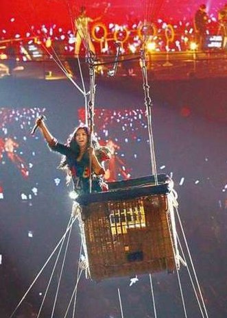 唱high的阿妹登上熱氣球繞場(chǎng)致意 噱頭十足(圖片來源:臺(tái)灣媒體)