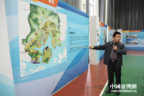 集美新城開發建設指揮部主任助理葉章旺向記者介紹新城的規劃方案(中國臺灣網 扶海濤 攝)