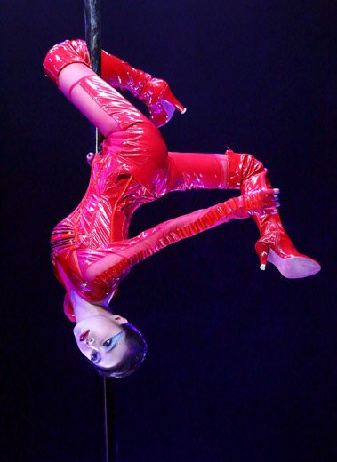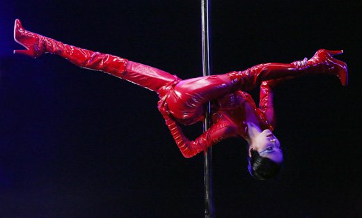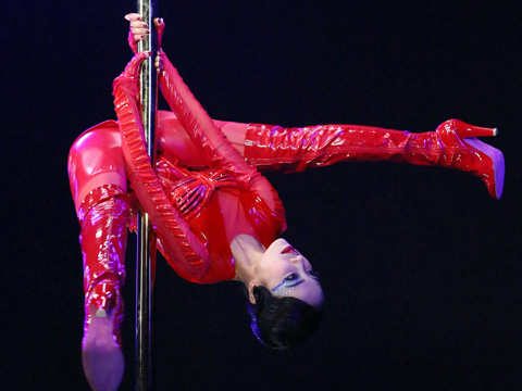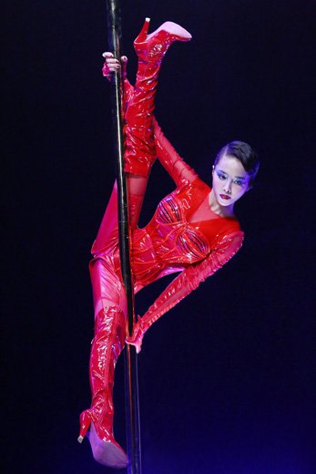 蔡依林表演高難度“自轉(zhuǎn)鋼管”。(來源:華納唱片)