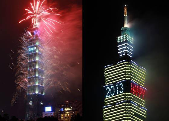 和去年一樣長達188秒的2013臺北101跨年煙火秀精彩登場,估計有85萬人到場觀賞。圖片來自臺灣今日新聞網