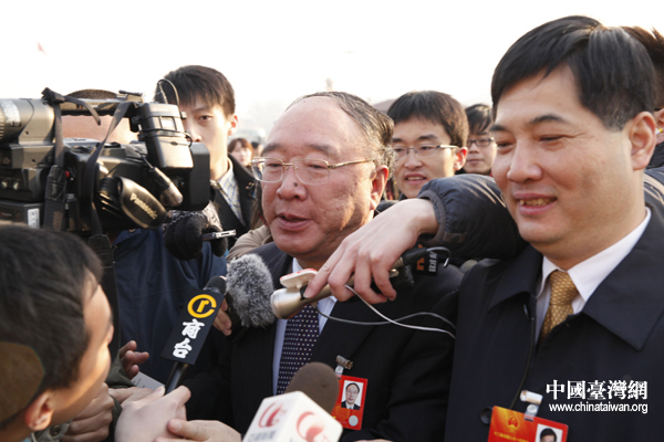 全國人大大代表、重慶市長黃奇帆步入人民大會堂。(中國臺灣網 何建峰 攝)