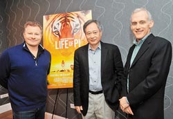 《少年PI的奇幻漂流》編劇戴維梅吉(左起)、導演李安、剪接師提姆史奎爾斯暢談拍片過程。(圖片來自臺媒)