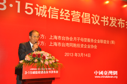 中國臺灣網(wǎng)3月14日上海消息 20家從事月子母嬰服務(wù)的上海市臺協(xié)會會員企業(yè),今天發(fā)出誠信經(jīng)營七項倡議,倡導(dǎo)從本企業(yè)做起,向消費者和全社會作出誠信經(jīng)營、遵紀(jì)守法、良性競爭的自律承諾。全國臺企聯(lián)常務(wù)副會長、上海市臺協(xié)會會長葉惠德出席發(fā)布會并為見證了上海市臺協(xié)會月子母嬰服務(wù)企業(yè)聯(lián)誼會的籌備儀式。
