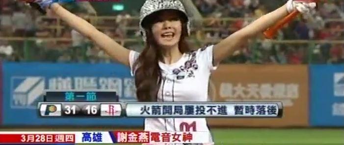 臺灣職棒大聯盟犀牛隊主場開幕賽,臺灣電音歌手謝金燕開球。(圖片來自臺媒)
