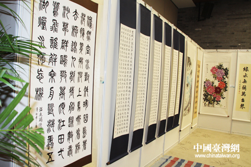 筆會(huì)同時(shí)進(jìn)行展出的南臺(tái)灣書(shū)畫(huà)家作品。(中國(guó)臺(tái)灣網(wǎng) 郭慶娜 攝)