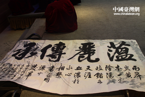 筆會(huì)上臺(tái)灣書(shū)畫(huà)家創(chuàng)作書(shū)法作品。(中國(guó)臺(tái)灣網(wǎng) 郭慶娜 攝)