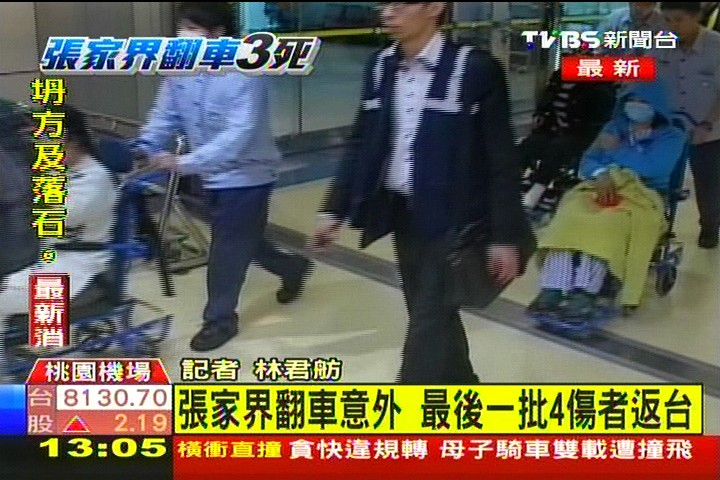 張家界車禍最后一批傷者返臺。圖片來自臺灣TVBS電視臺網站