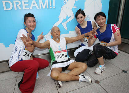 高齡96歲的彭宏年抵達終點時,贏得全部參賽者的熱烈掌聲,連在一旁參賽的空姐團也爭相與他合照。彭宏年稍微休息之后接受訪問,他說平常就有運動的習慣,每一屆都會來參加,跑完的感覺“當然很累!”