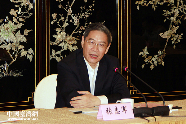 5月16日,中共中央臺辦、國務院臺辦主任張志軍在江蘇南京與臺商座談時表示,鼓勵兩岸企業深化互利合作,攜手參與國際市場競爭。(中國臺灣網 楊麗 攝)
