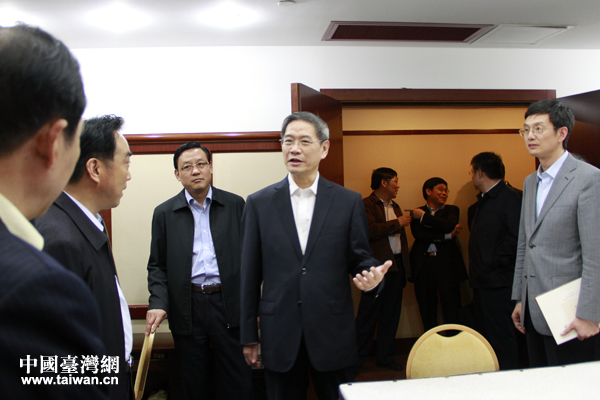 5月16日,中共中央臺辦、國務院臺辦主任張志軍到兩岸企業家峰會秘書處看望工作人員。(中國臺灣網 楊麗 攝)