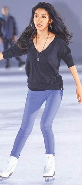 曲婉婷昨在臺北小巨蛋練習(xí)滑冰,架式頗具專業(yè)。(圖片來自臺媒。)