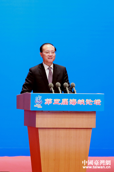 今日上午9時,第五屆海峽論壇大會在廈門海峽會議中心舉行。國家旅游局長邵琪偉在會上宣布赴臺旅游新政。(中國臺灣網 普燕 攝)