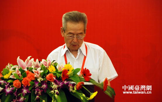 四川省黃埔軍校同學會會長張修忠在座談會上發言。(中國臺灣網 李丹 攝)