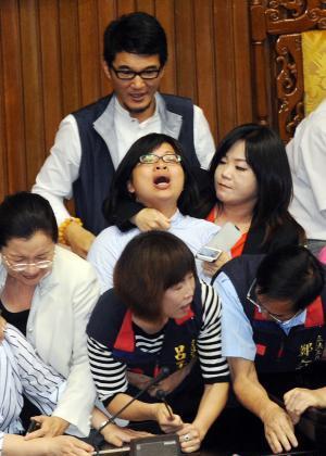 “立法院臨時會”原定處理證券交易所得稅修法、公共債務法與核四“公投”案等,未料“立委”從上午6時30分起就上演全武行,場面一片混亂,完全失焦!八{委”王惠美控訴,“綠委”姚文智“從后面抱她、拉她雙臂”,氣得她當場痛哭、尖叫;姚文智回應,沖突難免會有肢體推擠,但絕未暴力相向。