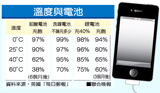 溫度與電池。圖片來源:臺灣《聯(lián)合晚報(bào)》