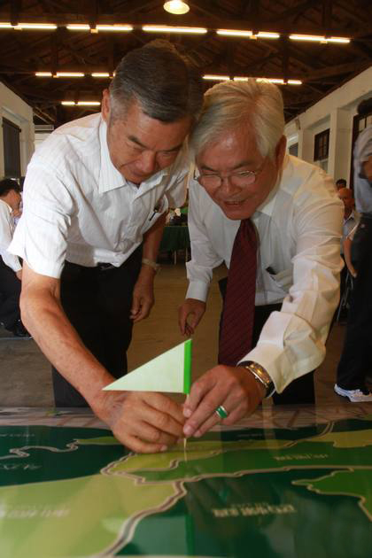 李進勇插小綠旗在云縣各鄉鎮地圖上。(圖片來自臺媒)