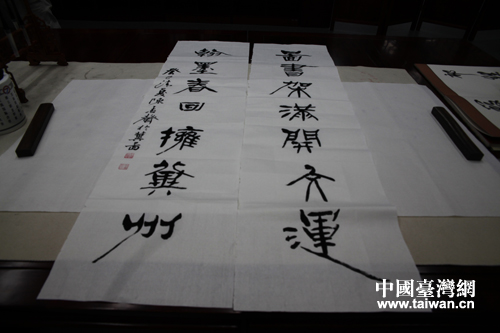 臺中市政府參事兼主任、勤益大學文創(chuàng)系助理教授更是在河北省圖書館揮毫潑墨,留下“圖書架滿開大運 翰墨春回擁冀州”。ㄖ袊_灣網(wǎng) 高斯斯 攝)
